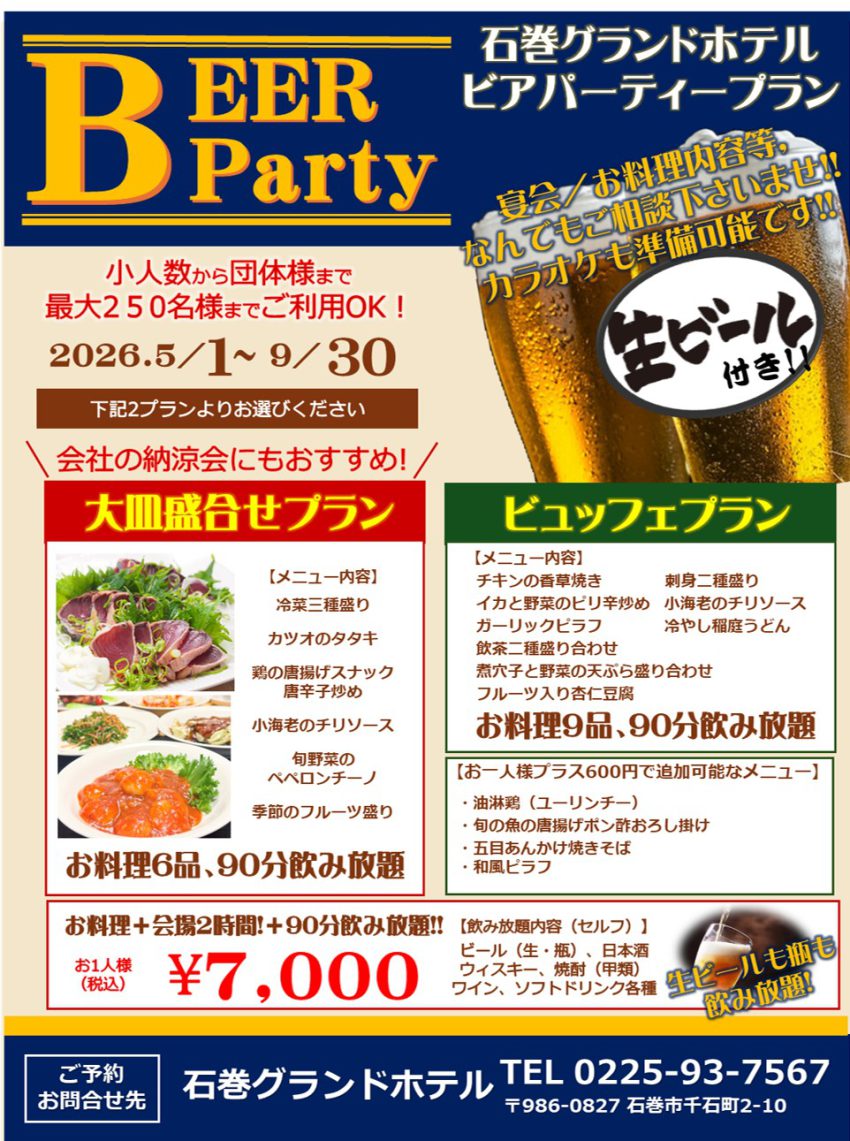 石巻でのホテル選びに迷われましたら、伝統あるおもてなしと機能性を兼ね備えた石巻グランドホテルをぜひご利用ください。